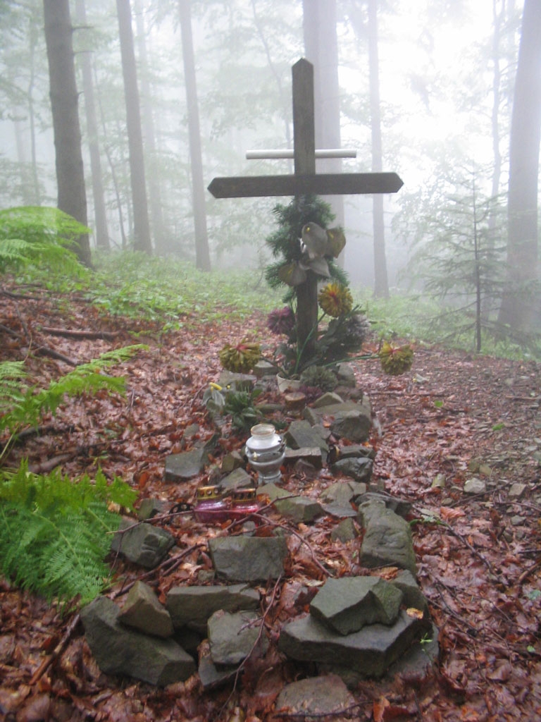 drewniany i nieco młodszy, metalowy krzyż. Jak powiadają miejscowi,
